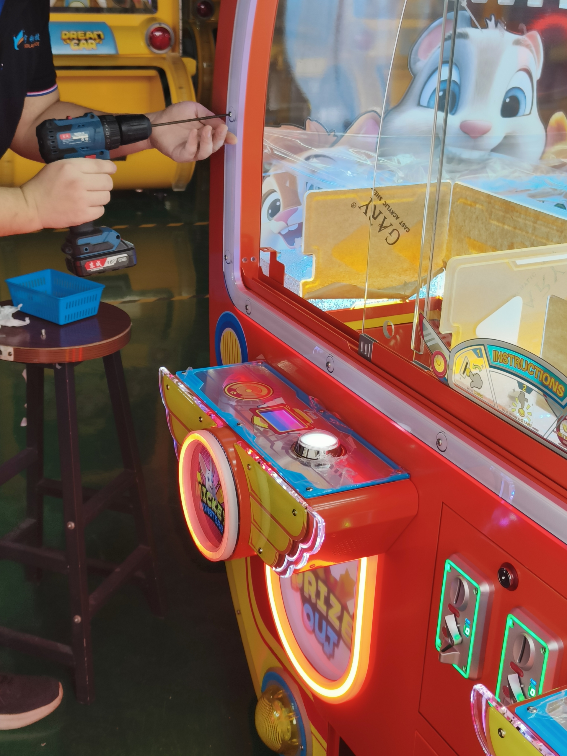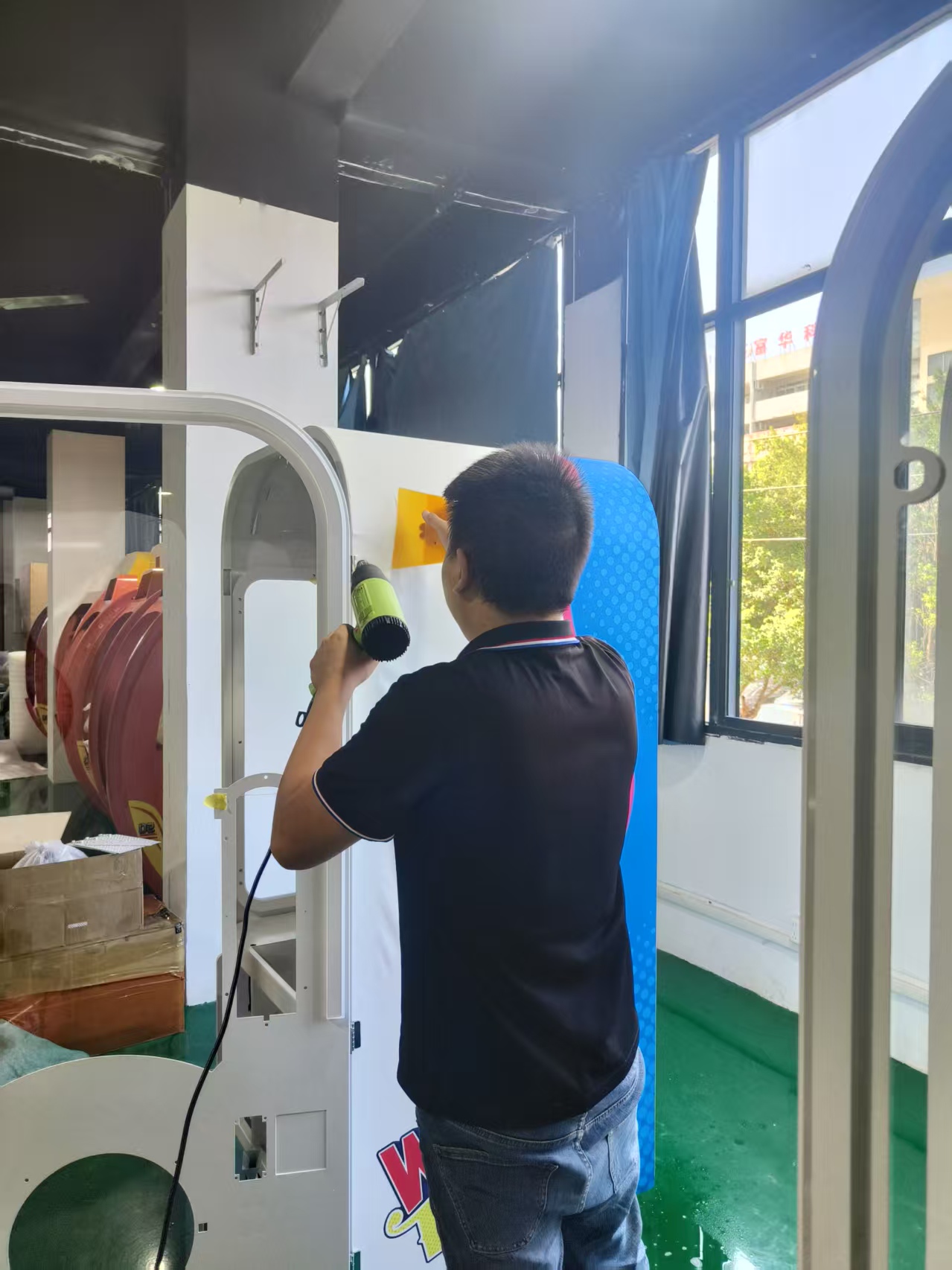 Applying stickers to the machine